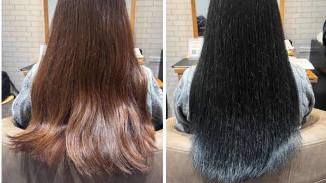 明るくなってしまう髪がカラーエステで落ち着いた艶髪になった事例をご紹介致します。