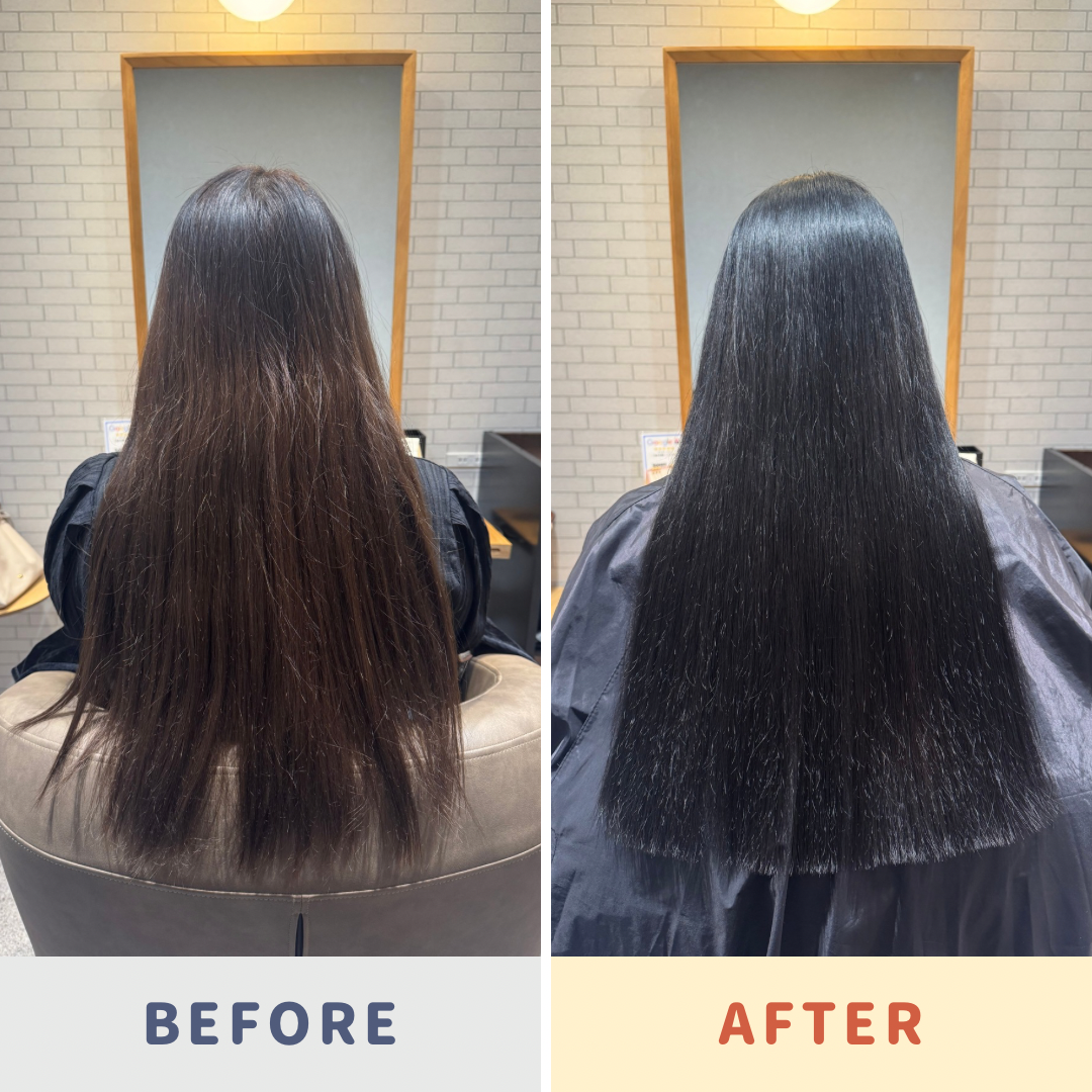 同時に髪内部にたっぷりと栄養分と保湿成分を補給しました。