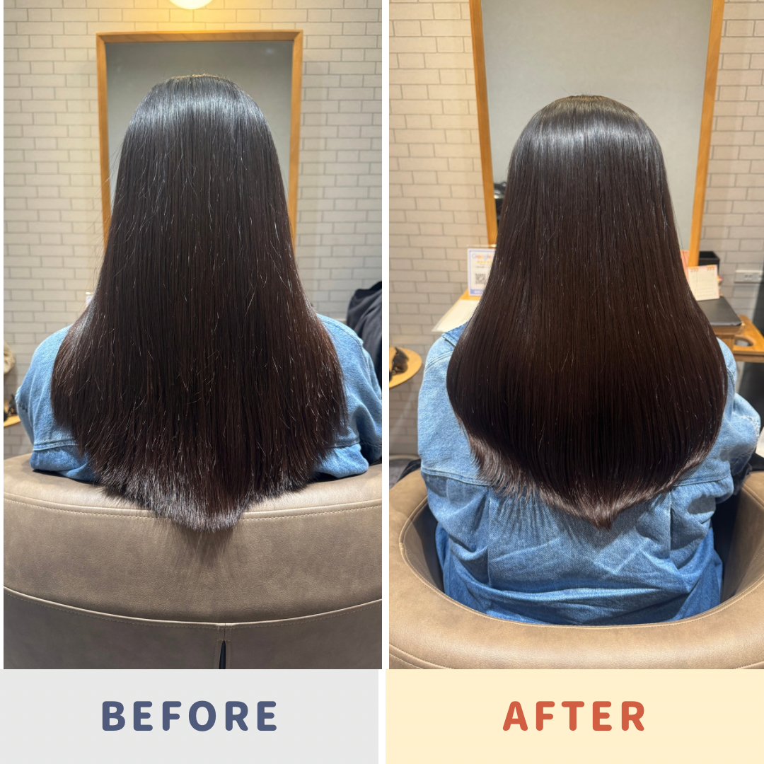 お客様一人ひとりの髪の状態に合わせたオーダーメイドの栄養補修を定期的に行うことで、髪の内部から健康的なハリとツヤを維持できるようにサポートしています。