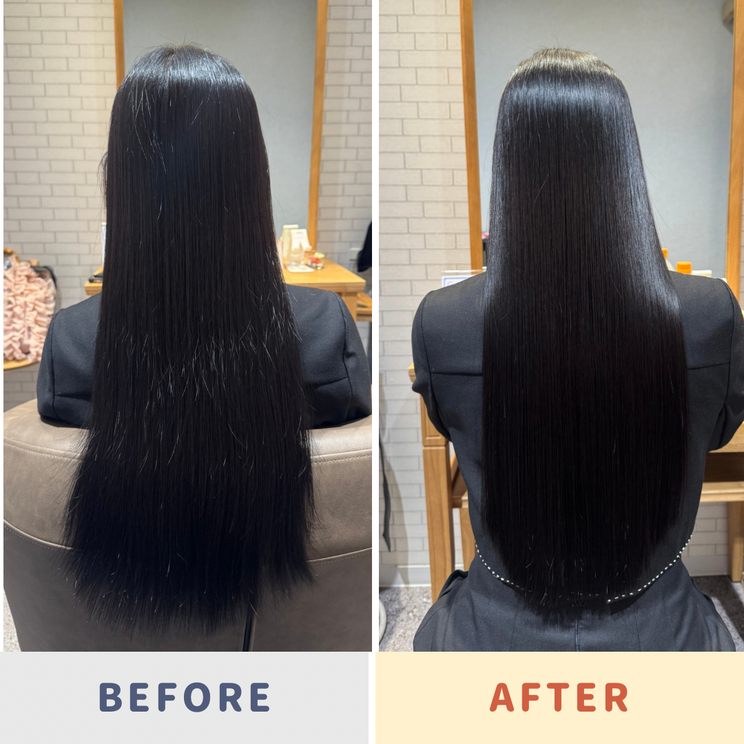髪のパヤつきがなくなり、毛先までまとまりのあるツヤ髪に。